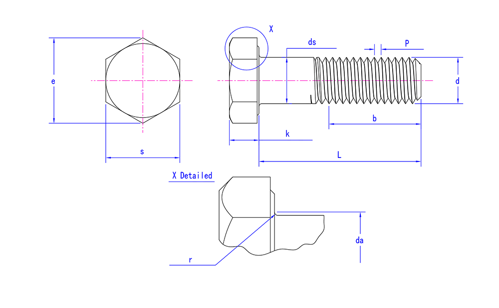 | Características de la cabeza | Diámetro del vástago > Diámetro principal de la rosca |