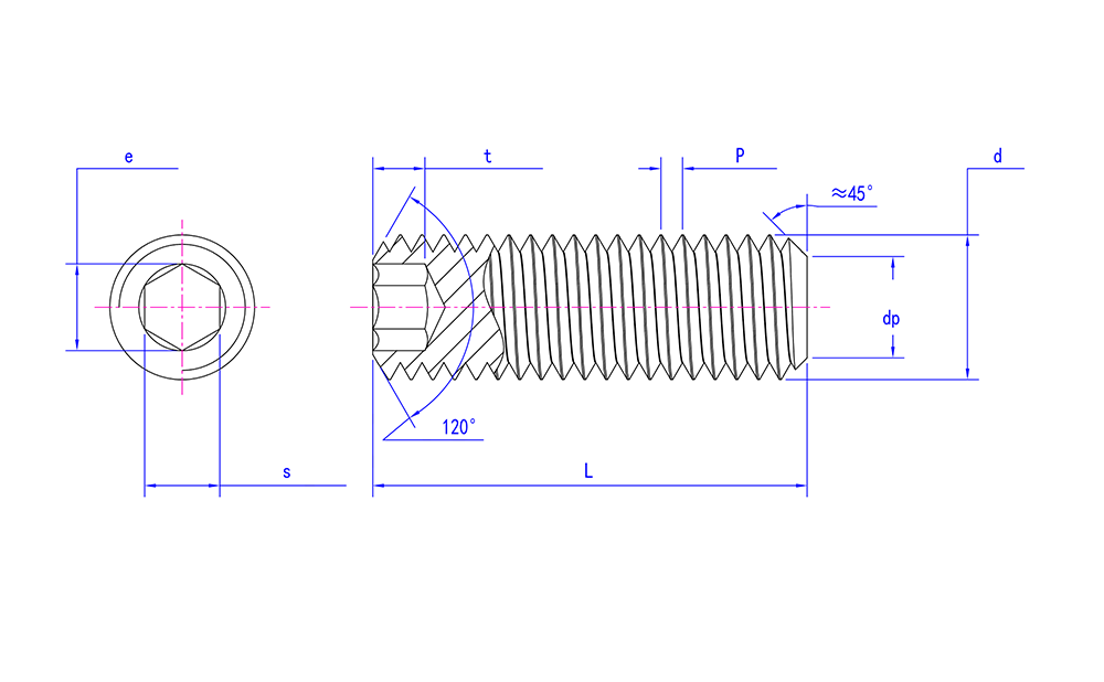 Tornillos de presión del zócalo del hexágono del acero inoxidable del estruendo 913 con el punto plano